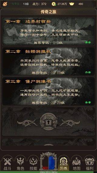 传奇之旅是一款暗黑风格的角色扮演类手游。游戏以图文形式展开,没有炫酷的动作和精致的特效,但是玩家也能在其中感受到游戏的乐趣,在屏幕中点击怪物即可加入战斗,血量等信息实时改变,让玩家能够直观的感受到战斗的胜率,击败怪物可以掉落装备和强化材料,战斗结束后可以休整来调整状态,然后继续作战。
